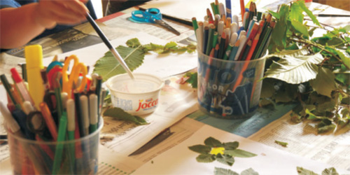 La natura arriva in classe, con foglie, sassi, terra, legno, reperti vari, pronti per essere scoperti, manipolati, osservati, trasformati con fantasia.