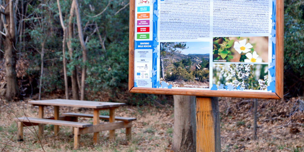 Individuazione di percorsi con effettivo interesse escursionistico, e caratterizzazione di sentieri con tema portante naturalistico e/o culturale; definizione segnaletica direzionale, pannellistica illustrativa, preparazione di strumenti di supporto all'escursionista (cartografia, descrizioni, tracce GPS).